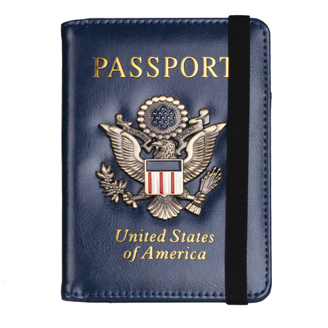 卸売パスポートカバー高級ブルーパスポートホルダーRFIDカスタム旅行財布女性革パスポートカバー